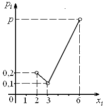 , имеющей возможные значения 2, 3, 6 с соответствующими вероятностями 0,2; 0,1; 0,7.Таким образом, закон распределения дискретной случайной величины имеет вид:
