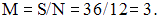 , при количестве измерений K = 6 будет вычислено значение M, равное …