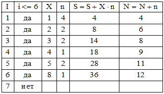 .Последовательность вычислений внутри цикла представим в виде таблицы