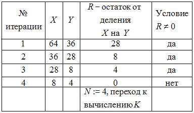 Итерации цикла при наших значениях переменных будут иметь вид: