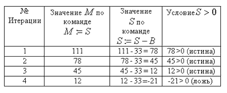 . Итерации цикла при наших значениях переменных будут иметь вид: