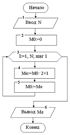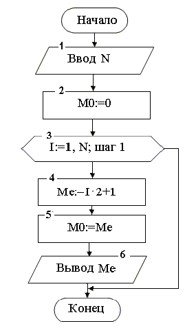 является параметром цикла. Значит, в нашей блок-схеме должно быть условное обозначение цикла с параметром, внутри которого должны находиться блоки вычисления значений переменных из пунктов 4 и 5. После окончания выполнения цикла должен находиться блок вывода значения переменной