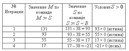 . Итерации цикла при наших значениях переменных будут иметь вид: