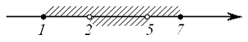 – это часть числовой оси от точки 2 до точки 7, не включающая точку 2 и включающая точку 7. Изобразим эти множества на рисунке: