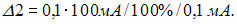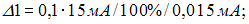 Для измерения тока 10 мА использованы два прибора, имеющие пределы измерения 15 мА и 100 мА, класс точности 0,1. Абсолютные погрешности миллиамперметров будут равны _____ мА.