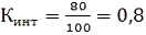 В течение смены станок фактически проработал 5 ч. По паспортным данным выработка станка составляет 100 единиц продукции в час, фактически за 5 часов работы она составила 80 единиц продукции в час. Коэффициент интенсивного использования оборудования составил …