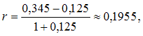 Уровень инфляции за год по данным статистических отчетов составил 12,5 %. Номинальная ставка процента равна 34,5 %. Реальная ставка процента в этих условиях равна ___ %.