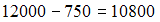 При условии, что ВВП равен 12 000 ден. ед., амортизационные отчисления 1200 ден. ед., трансфертные платежи 750 ден. ед., потребительские расходы 4200 ден. ед., ЧВП составит ____ ден. ед.