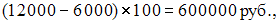 Себестоимость 1 тонны картофеля, выращиваемого на первом участке, составляет 6 000 руб., на втором участке – 7 500 руб., на третьем участке – 10 000 руб. Оптовая цена 1 тонны картофеля – 12 000 руб. Дифференциальная рента, получаемая на первом участке, при урожае 100 тонн равна _____ тыс. руб.