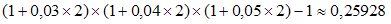 Динамика цен в стране оказалась такова, что уровень инфляции за три месяца вырос в два раза относительно прошлогодних показателей за аналогичный период, когда он составил 3, 4 и 5 % соответственно. Уровень инфляции за квартал в рассматриваемом году составил ___ %.