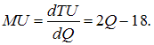 Предельная полезность показывает прирост общей полезности в результате увеличения потребления товара на одну дополнительную единицу. Функция предельной полезности (MU) рассчитывается как первая производная от функции общей полезности (TU):