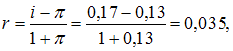 где r –реальная ставка процента, i – номинальная ставка процента, p – темп (уровень) инфляции. Следовательно,