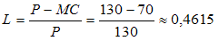 Тогда степень ее монопольной власти (коэффициент Лернера) составляет …