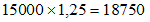 Месячный оклад начальника отдела кадров фирмы составляет 18000 руб. В текущем месяце было 24 рабочих дня, размер премии из фонда материального поощрения в текущем месяце составил 25 % оклада. Работник отработал 20 рабочих дней (4 дня болел). Величина заработной платы за текущий месяц составила (без размера больничных) …