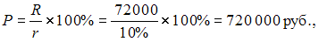 Минимальная цена (P), за которую владелец ресурса, приносящего рентный доход (R), готов отказаться от него, определяется по формуле