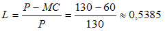 Тогда степень ее монопольной власти (коэффициент Лернера) составляет …