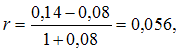 Уровень инфляции за год по данным статистических отчетов составил 8%. Номинальная ставка процента равна 14%. Реальная ставка процента в этих условиях равна ___ %.