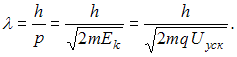 Окончательное выражение для длины волны де Бройля через ускоряющую разность потенциалов имеет вид: