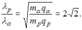 -частица прошли одинаковую ускоряющую разность потенциалов, то отношение их длин волн де Бройля равно …