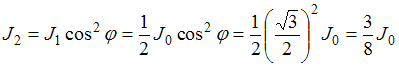 между направлениями OO и O’O’, равном 30°, J2 и J0 связаны соотношением …