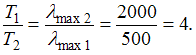 Согласно закону Вина, длина волны, на которую приходится максимум спектральной плотности энергетической светимости абсолютно черного тела, обратно пропорционален его термодинамической температуре:
