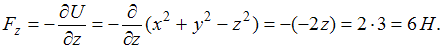 -компонента (в Н) вектора силы, действующей на частицу в точке А (1, 2, 3), равна …