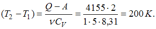Одному молю двухатомного газа было передано 5155 Дж теплоты, при этом газ совершил работу, равную 1000 Дж, а его температура повысилась на ______ K.