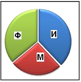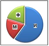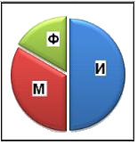 На диаграмме показано количество призеров олимпиады по информатике (И), математике (М) и физике (Ф) в трех городах России:
