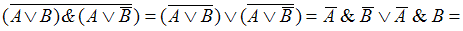 , применив следующие законы алгебры логики: де Моргана, двойного отрицания, непротиворечия, поглощения констант и дистрибутивного.