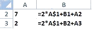 Получаем 2*A$1 + B2 + A3 = 60. Отсюда можно найти значение в ячейке A1.