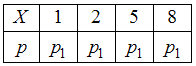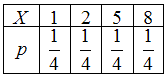 Составим закон распределения случайной величины, принимающей значения 1, 2, 5 и 8 с одинаковой вероятностью (допустим,