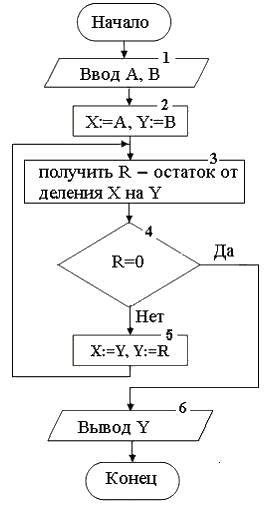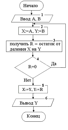 .Действия пунктов 3 и 5 на блок-схеме обозначаются блоками присваивания, а действие пункта 4 обозначается блоком выбора.