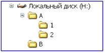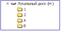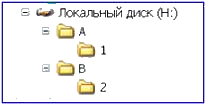 Таким образом, папки A, B и 2 должны находиться в корневом каталоге диска H:, а папка 1 должна быть вложена в папку A.
