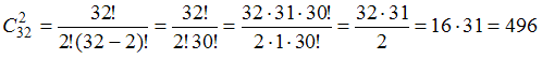 На шахматной доске 32 белых клетки. Значит, необходимо расставить 2 пешки на любые из этих 32 клеток. Так как в данном случае порядок расстановки пешек не имеет значения, то речь идет о сочетаниях из 32 по 2 элемента. Число различных сочетаний из