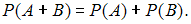 двух событий A и B называется событие, состоящее в появлении хотя бы одного из событий A или B, то есть или события A, или события B, или обоих этих событий. Данные события являются несовместными, то есть они не могут произойти одновременно (мел, согласно условию, не может быть двуцветным). Поэтому, согласно теореме о сумме вероятностей для несовместных событий, имеем: