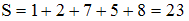 работа алгоритма закончится после ввода числа –3. До числа –3 введено 9 чисел. Из них положительных пять, их сумма составит