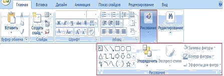 Панель команд «Рисование» приложения Microsoft PowerPoint 2007