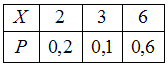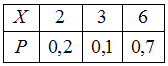 , имеющей возможные значения 2, 3, 6 с соответствующими вероятностями 0,2; 0,1; 0,7.