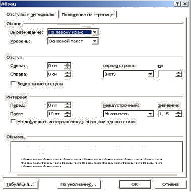 - характеристики положения абзаца на страницы.
