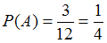Двенадцать журналов, составляющих годовую подписку (каждый месяц выпускается 1 журнал), разложены на столе в произвольном порядке. Случайным образом выбирают один журнал. Тогда вероятность того, что журнал был выпущен летом, равна …