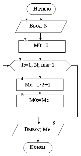 является параметром цикла. Значит, в нашей блок-схеме должно быть условное обозначение цикла с параметром, внутри которого должны находиться блоки вычисления значений переменных из пунктов 4 и 5. После окончания выполнения цикла должен находиться блок вывода значения переменной