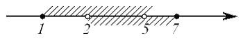 – это часть числовой оси от точки 2 до точки 7, не включающая точку 2 и включающая точку 7. Изобразим эти множества на рисунке: