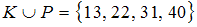 K – множество двузначных чисел, сумма цифр которых равна 4, P – множество двузначных чисел, произведение цифр которых равно 3. Тогда истинны следующие высказывания …