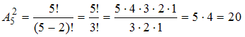 В семизначном номере телефона друга пять первых цифр известны, то есть необходимо выбрать две последние его цифры. Так как все цифры номера различны, а всего имеется 10 различных цифр (0, 1, 2, 3, 4, 5, 6, 7, 8, 9), то 5 из этих цифр уже использованы. Значит, необходимо выбрать две последние цифры из 5 оставшихся. Так как порядок цифр имеет значение и цифры должны быть различны, то речь идет о размещениях без повторений из 5 по 2 элемента. Число размещений без повторений из