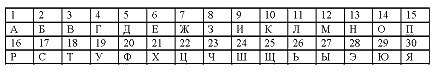 Для определения номера русской буквы в алфавите воспользуемся таблицей