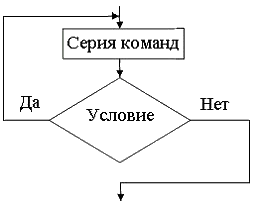 В словесном описании алгоритма присутствует конструкция «делать что-то, пока не выполнится условие» (Массу перемешивать до тех пор, пока весь сахар не растворится). То есть требуется повторение действий, но не известно, сколько раз эти действия придется повторить. Для описания подобных случаев используется базовая алгоритмическая структура «цикл с постусловием», которая в блок-схемах обозначается как