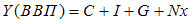 Валовой внутренний продукт (ВВП) – это суммарная стоимость конечных товаров и услуг, произведенных в стране за определенный период времени. Подсчет ВВП может быть осуществлен по расходам и доходам. При расчете ВВП по расходам учитываются потребительские расходы домашних хозяйств (С), валовые частные внутренние инвестиции (I), государственные закупки товаров и услуг (G) и чистый экспорт (Nx – разница между экспортом и импортом товаров). Таким образом, ВВП по расходам описывается уравнением: