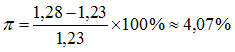 Индекс цен в рассматриваемом году составил 1,28, в прошлом – 1,23. Следовательно, уровень инфляции в рассматриваемом году равен ___ %.