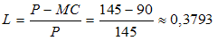Тогда степень ее монопольной власти (коэффициент Лернера) составляет …