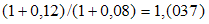 Известно, что инфляция за первые три квартала текущего года составила 8 %, для того, чтобы годовая инфляция не превысила ожидаемого уровня в 12 %, инфляция в четвертом квартале не должна быть больше ___ %.